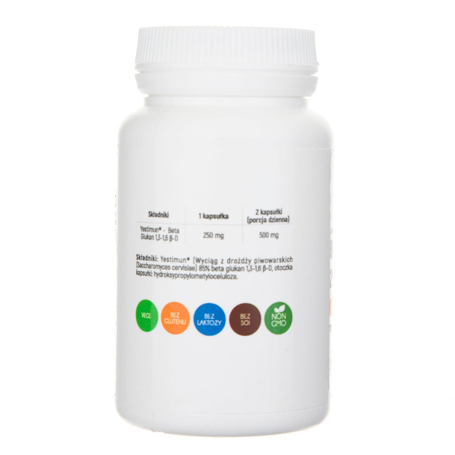 Beta Glucan 1,3-1,6 β-D vegetarian capsule dietary supplement from Aliness. Contains Yestimun® - Beta Glucan. Yestimun® Beta-Glucan is a completely natural and pure ingredient without any additives. It consists exclusively of brewer's yeast (100% Saccharomyces cerevisiae).