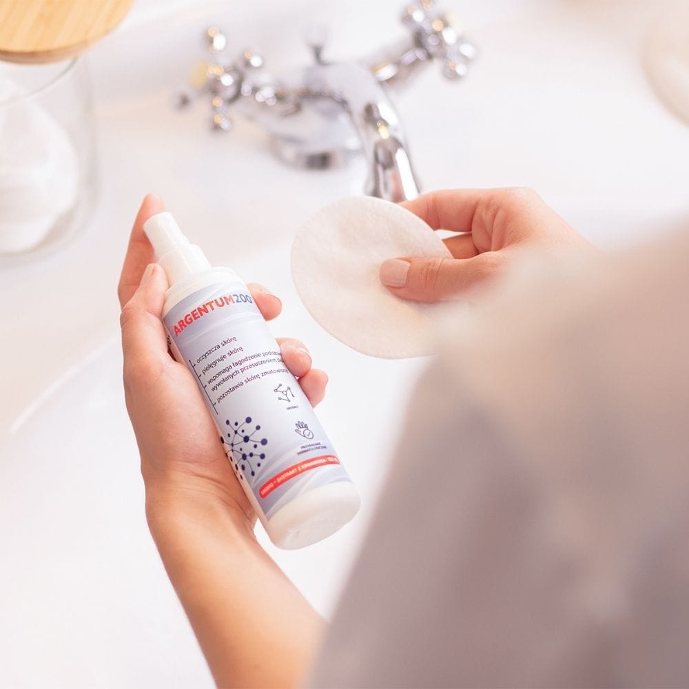 Specialised toner Aura Herbals Argentum200® Silver with silver citrate and yarrow extract for problematic skin. Effectively cleanses, helps reduce imperfections and mattifies skin with excess sebum. Light, water-based formula without SLS, parabens or alcohol. Effectiveness confirmed by SKINLAB tests – convenient spray.