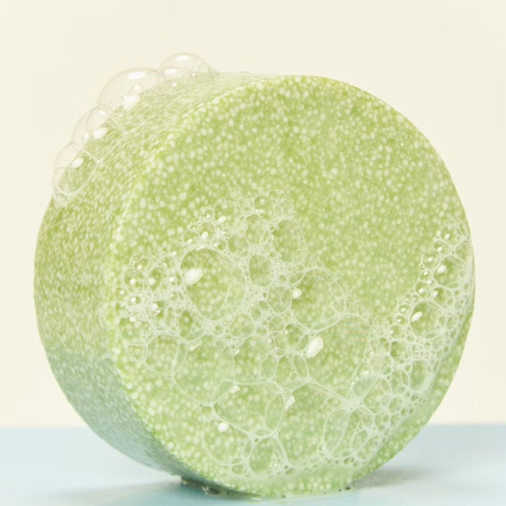 1. Wet the shampoo cube and rub it between your hands to create a rich lather.