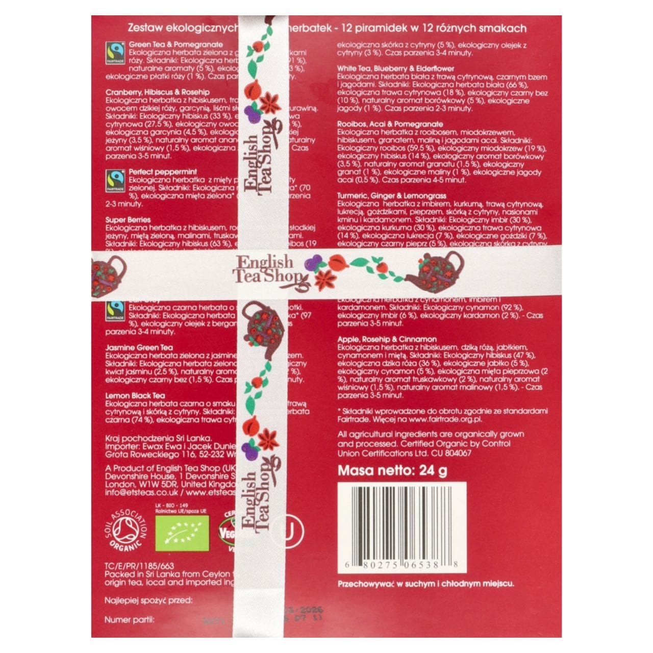 All teas come from certified organic farms and are packaged in biodegradable pyramid bags that allow the leaves to fully develop their aroma. The elegant packaging, reminiscent of a luxury box of chocolates, makes the set a unique gift for any occasion.