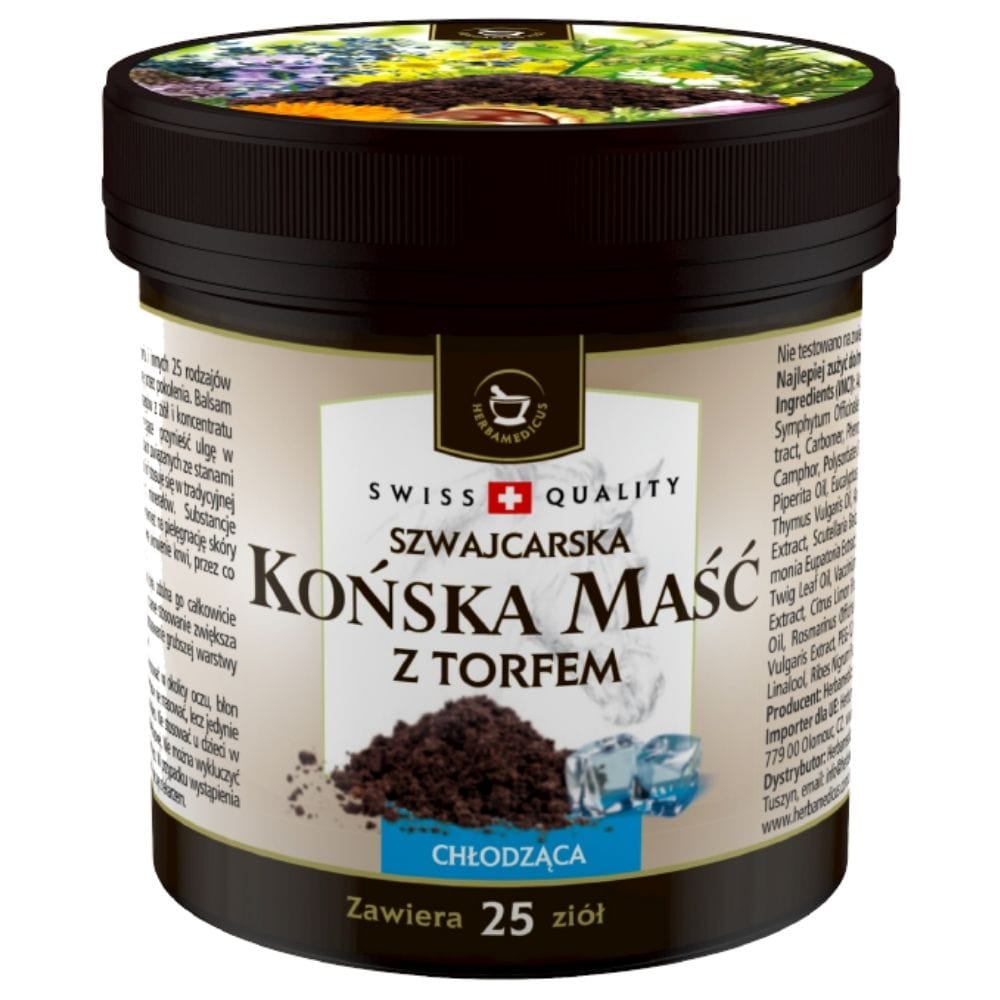 Herbamedicus Horse Ointment with Peat Cooling is a unique herbal balm created from high quality peat and 25 herbal extracts. The formula, based on a traditional recipe, provides an immediate cooling sensation and brings pain relief.