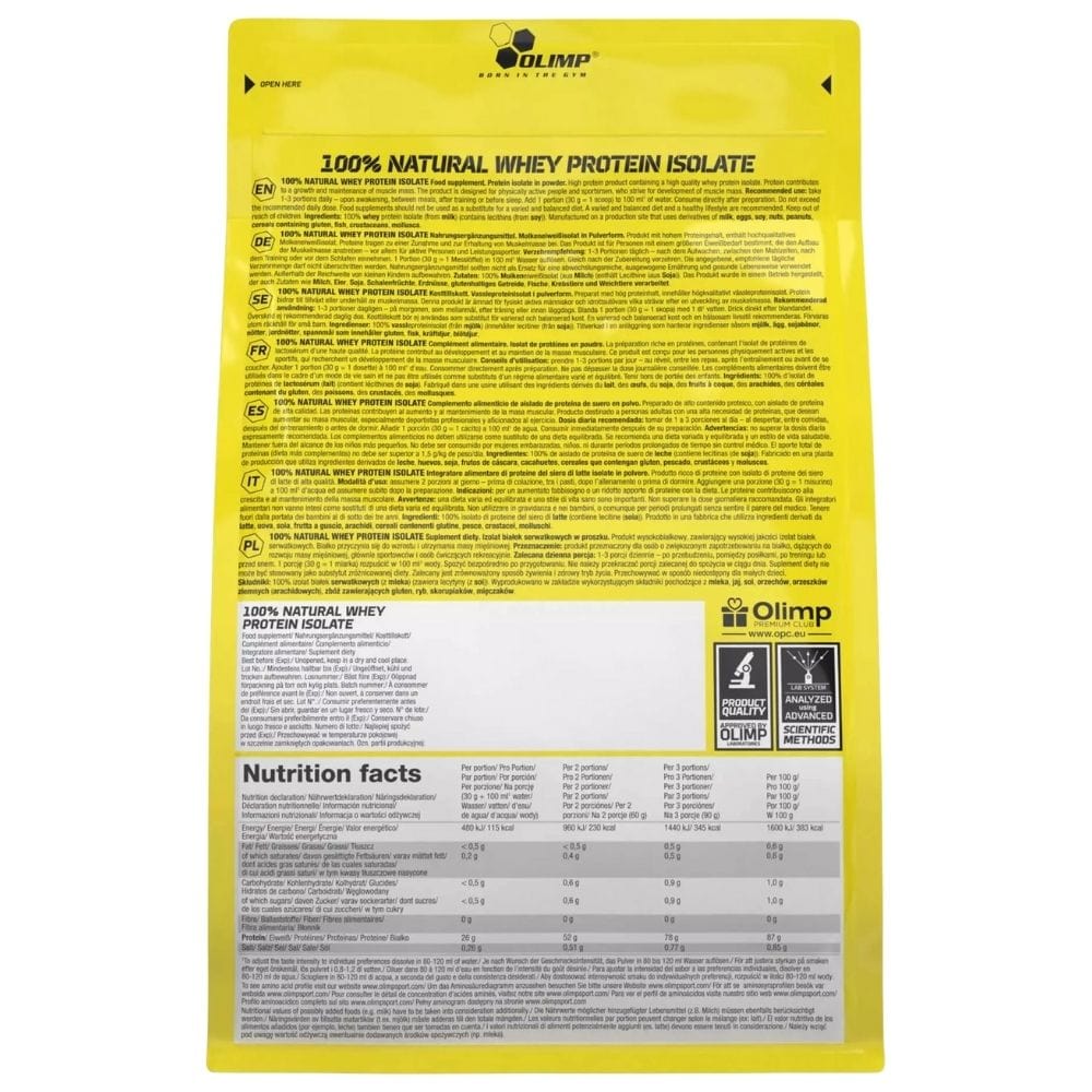 Olimp 100% Natural Whey Protein Isolate is a powdered dietary supplement with a natural flavour. The formula contains 100% whey protein isolate, without unnecessary additives and fillers.